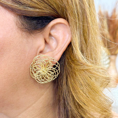 Se você acha que os brincos são apenas acessórios, é porque ainda não conheceu essa belezura! O Brinco Flor Nina é a semijoia perfeita para quem quer brilhar com muito estilo e um toque de romantismo. Com um design aramada pelo crochê artesanal e totalmente banhado em ouro 18k, ele é tão elegante que fará até suas flores de verdade ficarem com inveja!
